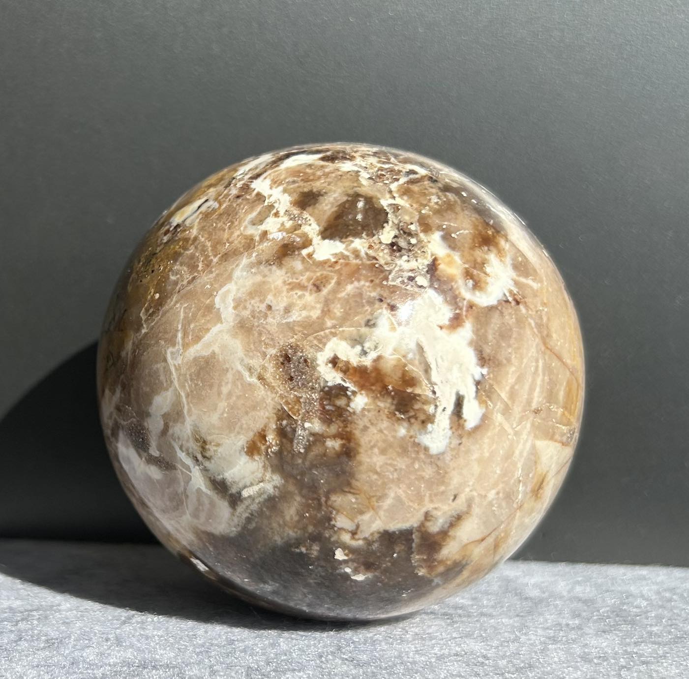 Like a universe captured in stone, this Black Opal sphere holds shifting flashes of color within its deep, cosmic body. Known as a stone of mystery and transformation, Black