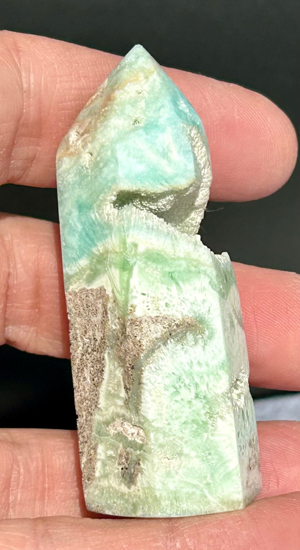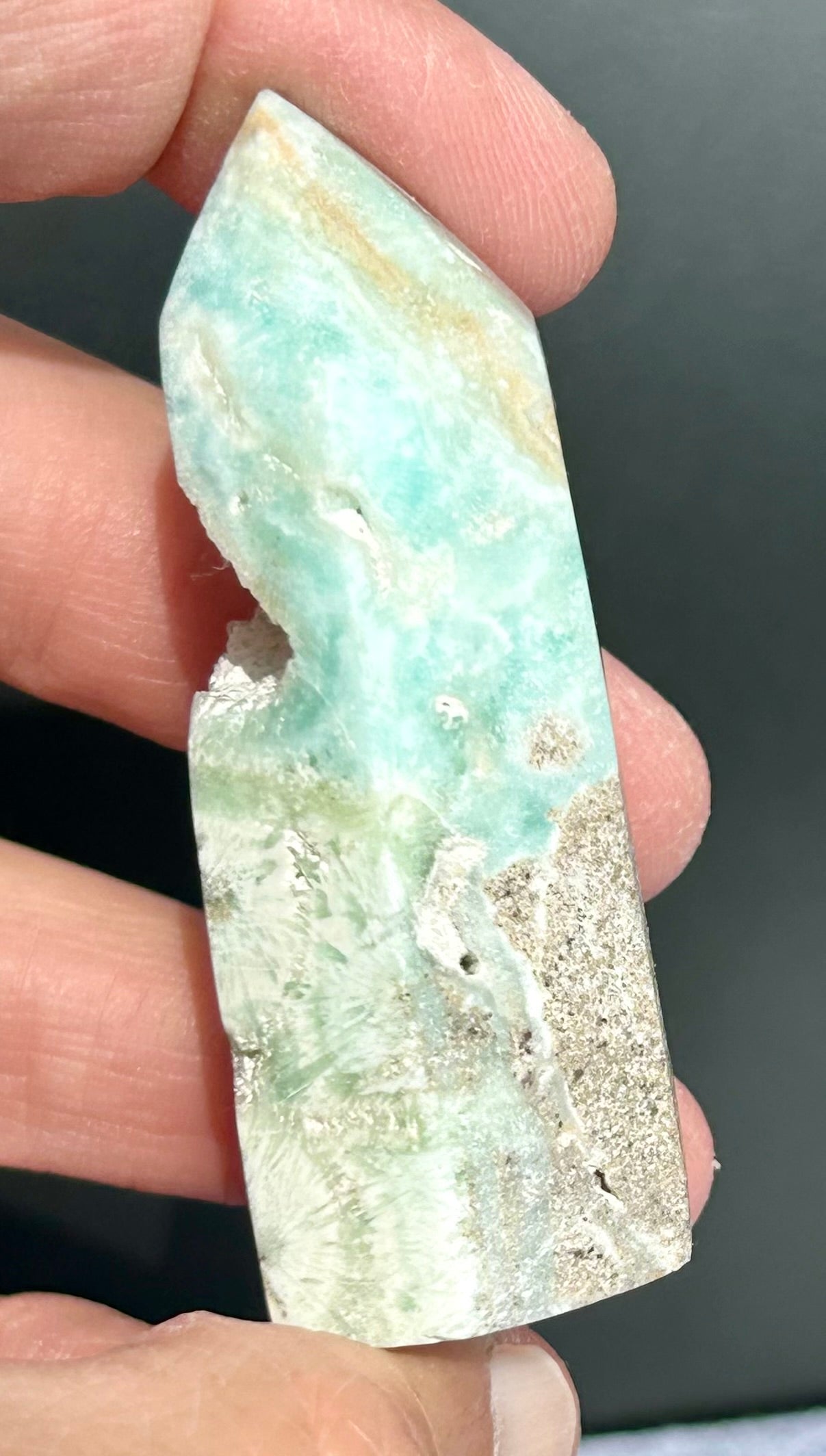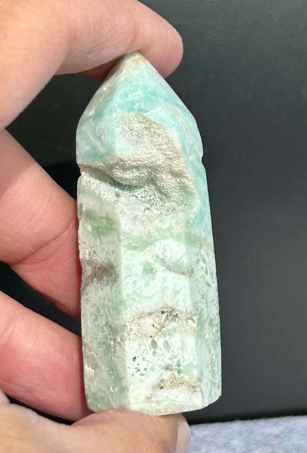 Swirls of turquoise, sand, and white evoke tropical shorelines in this beautifully banded tower. Caribbean Aragonite restores calm, balances mood, and brings a refreshing coastal energy.