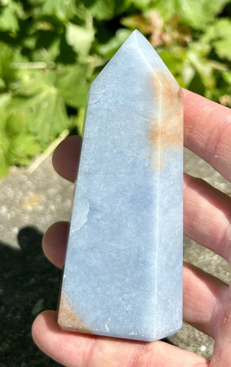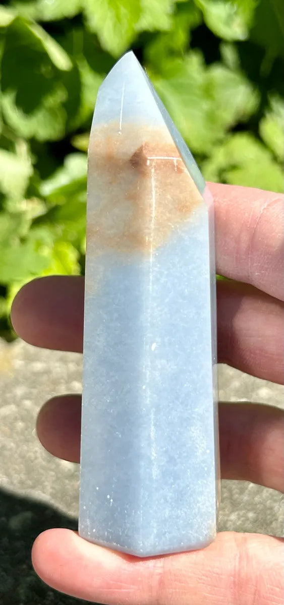 Great quality Angelite Tower. Angelite is said to assist with communication and self expression. A very soothing crystal that facilitates energy flow.